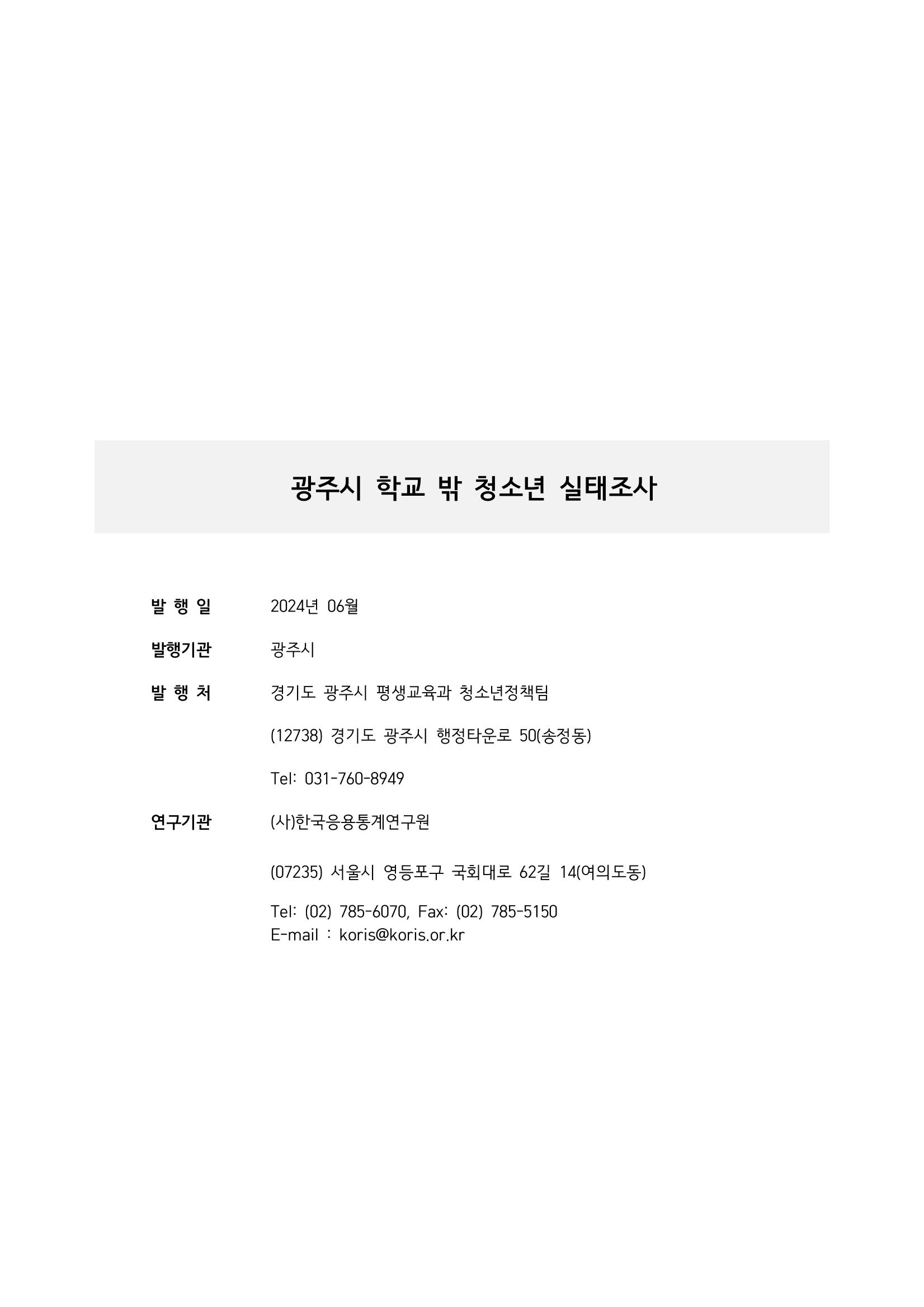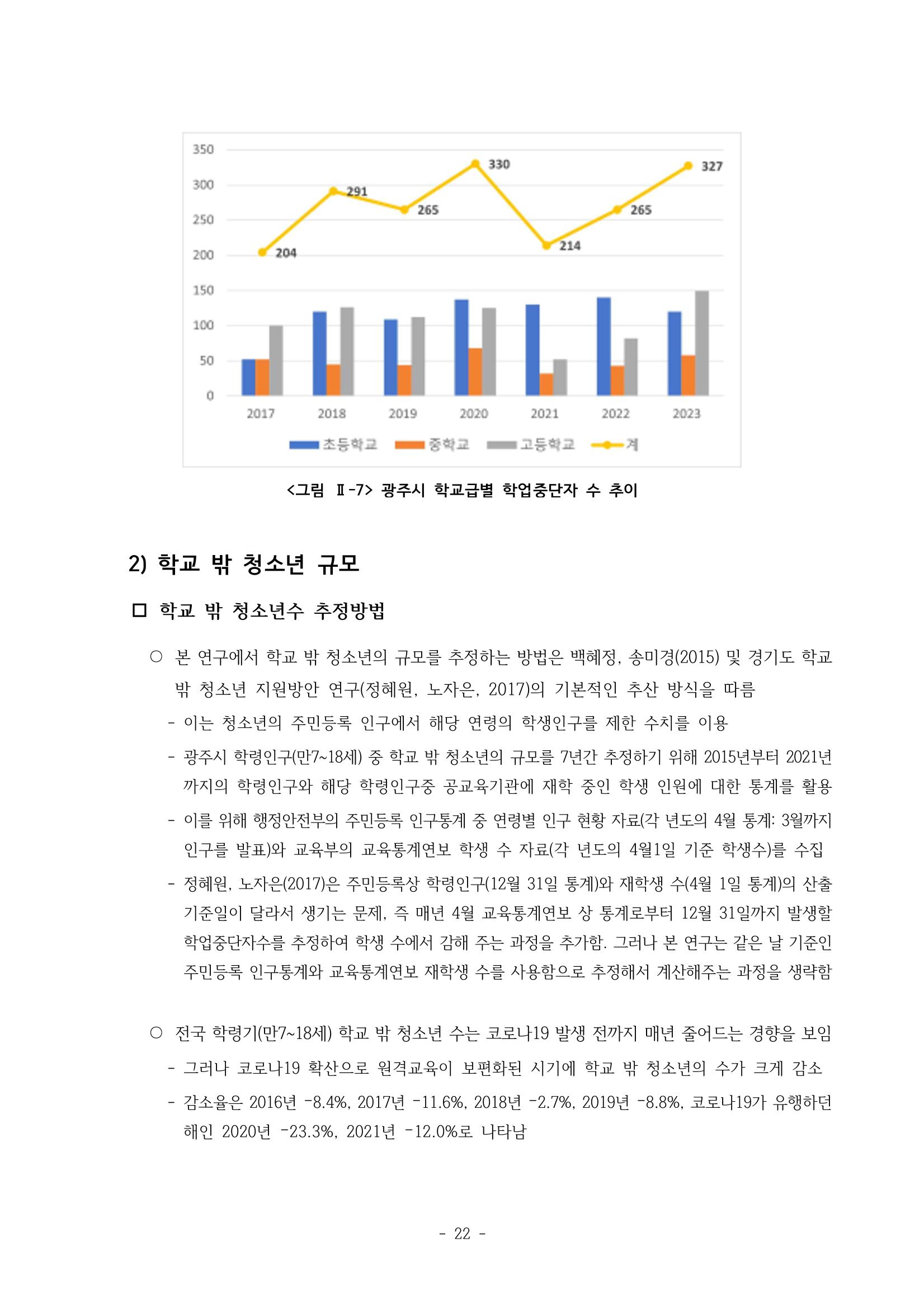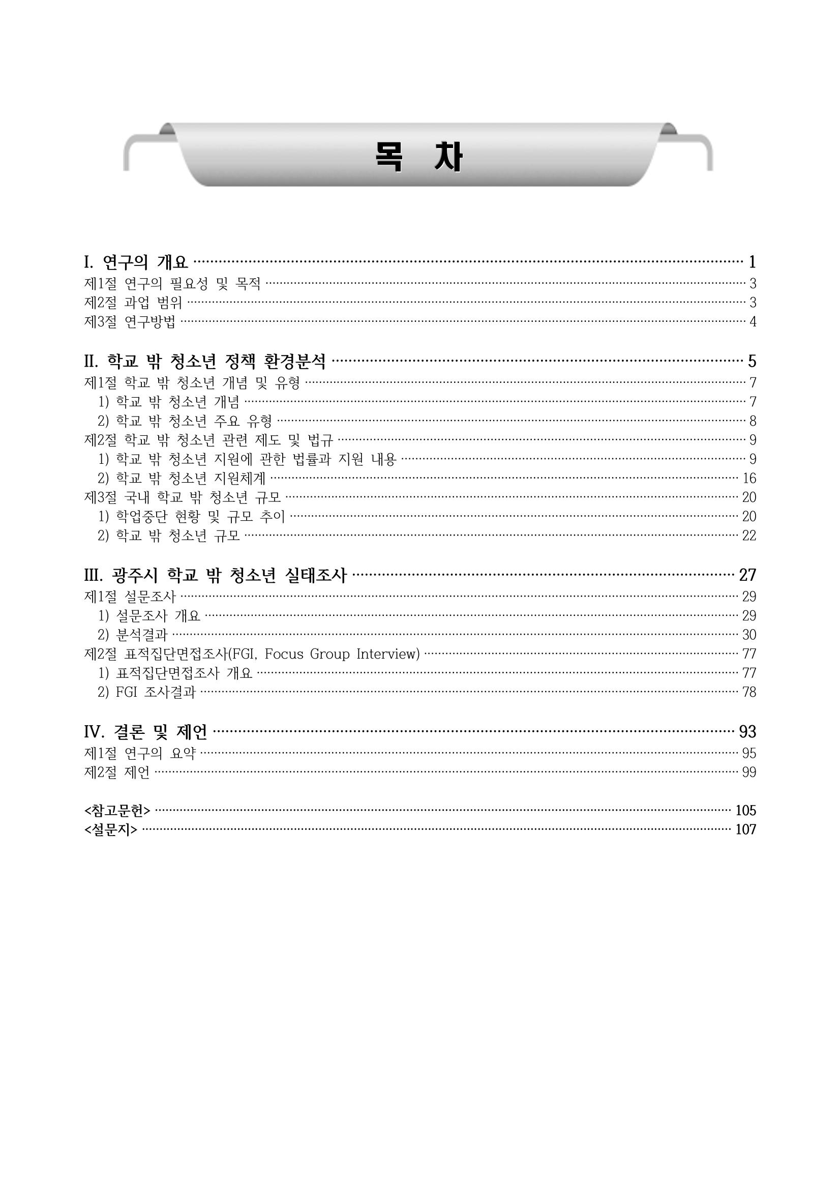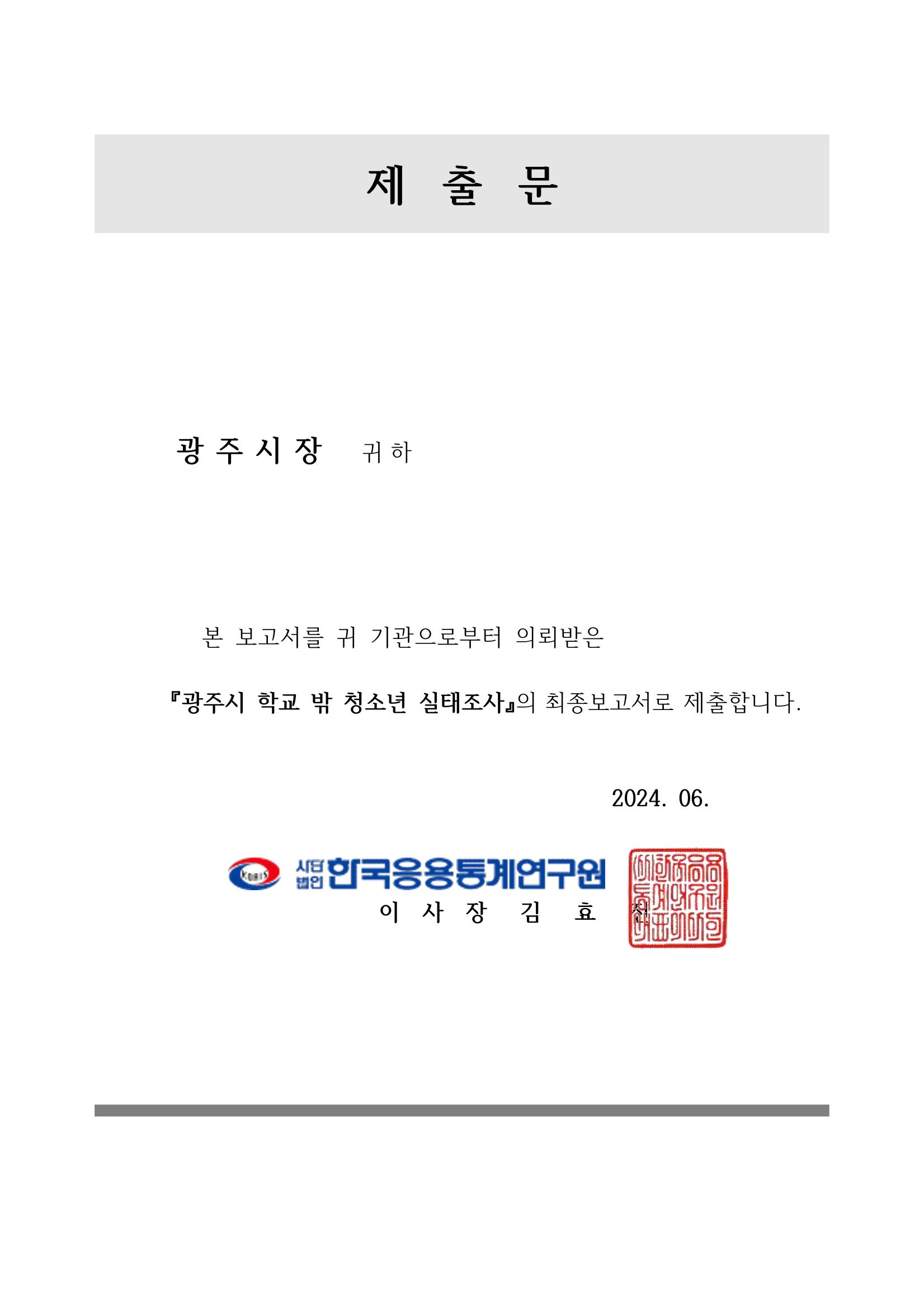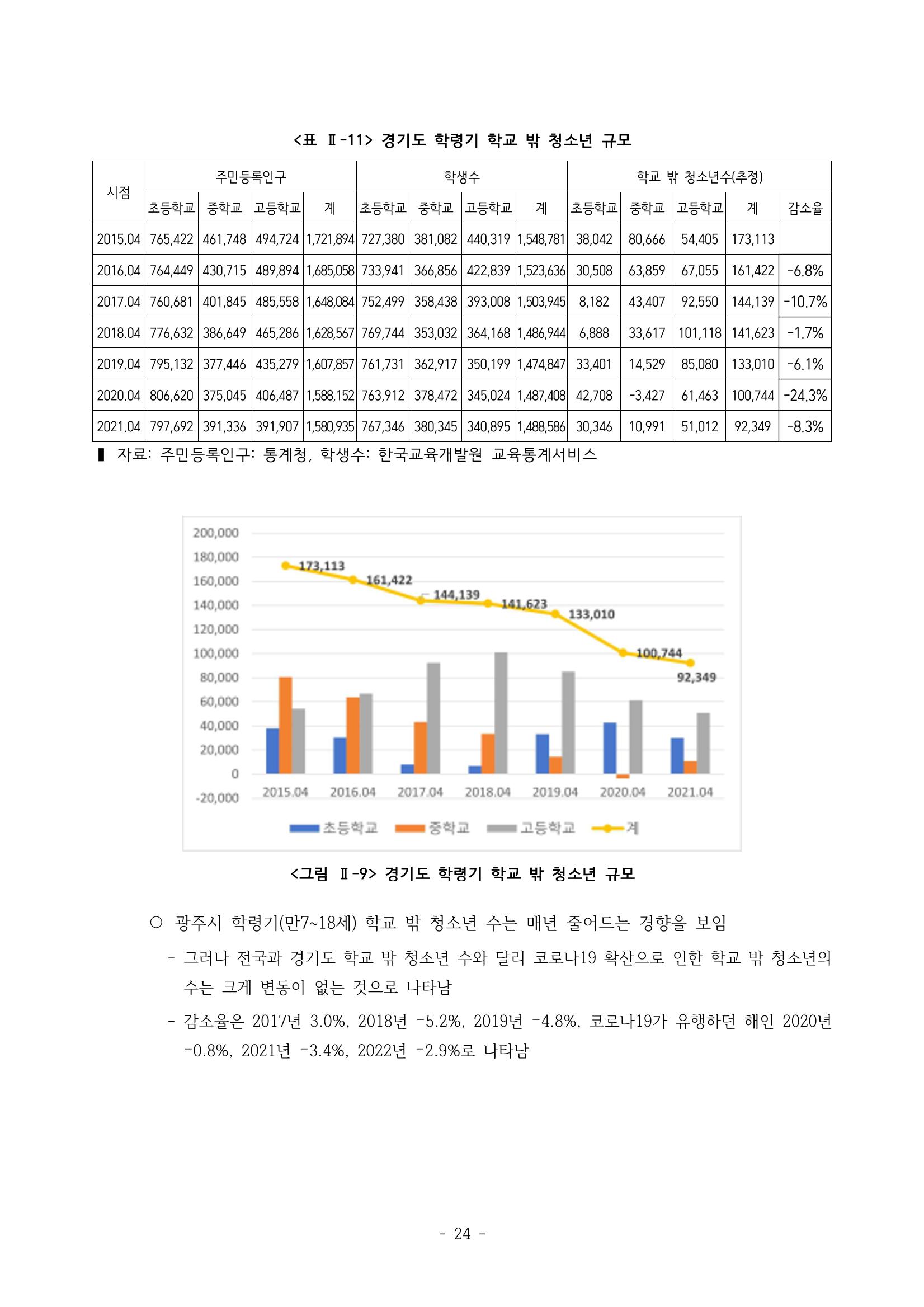 광주시 학교밖 청소년 실태조사 연구용역