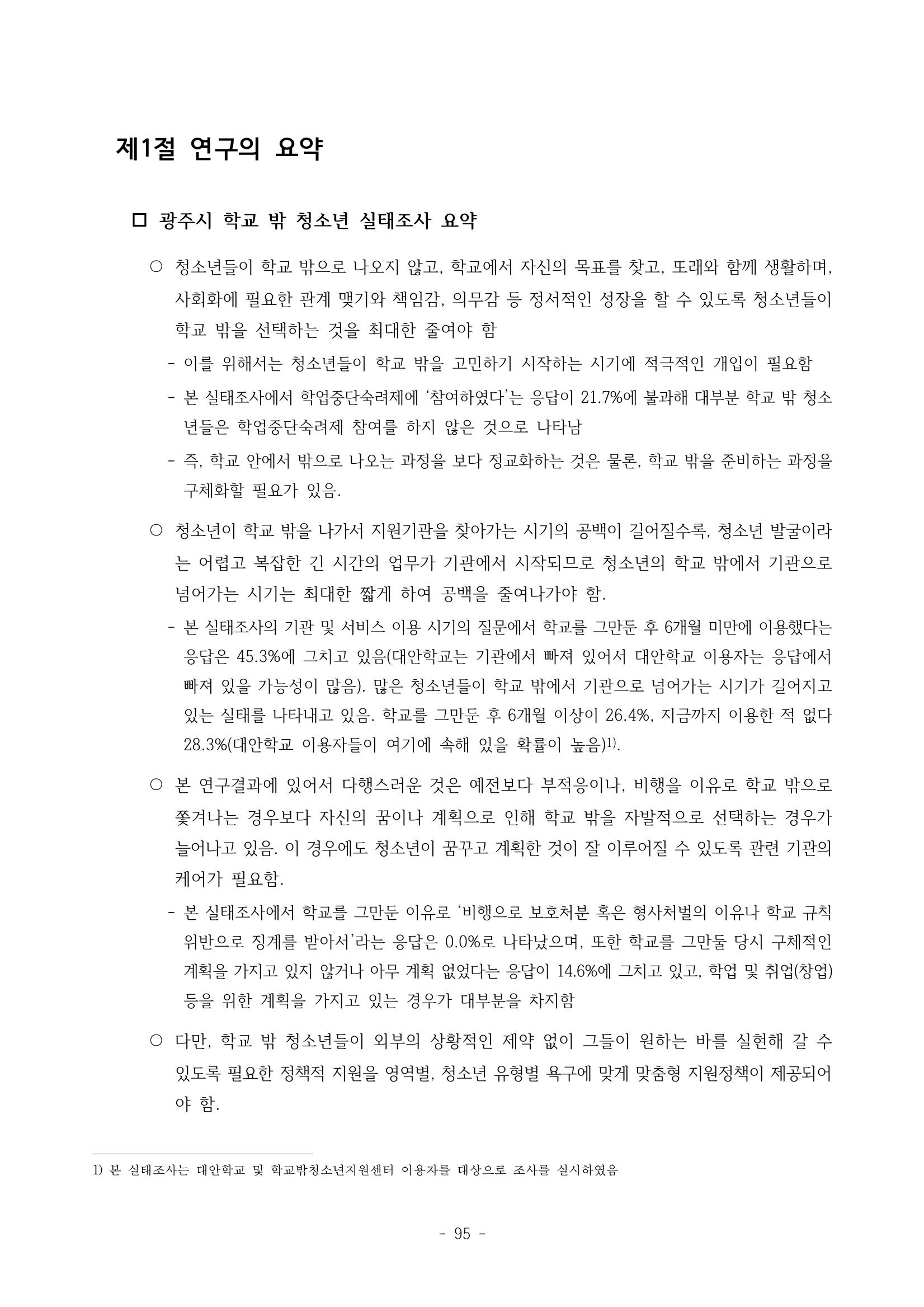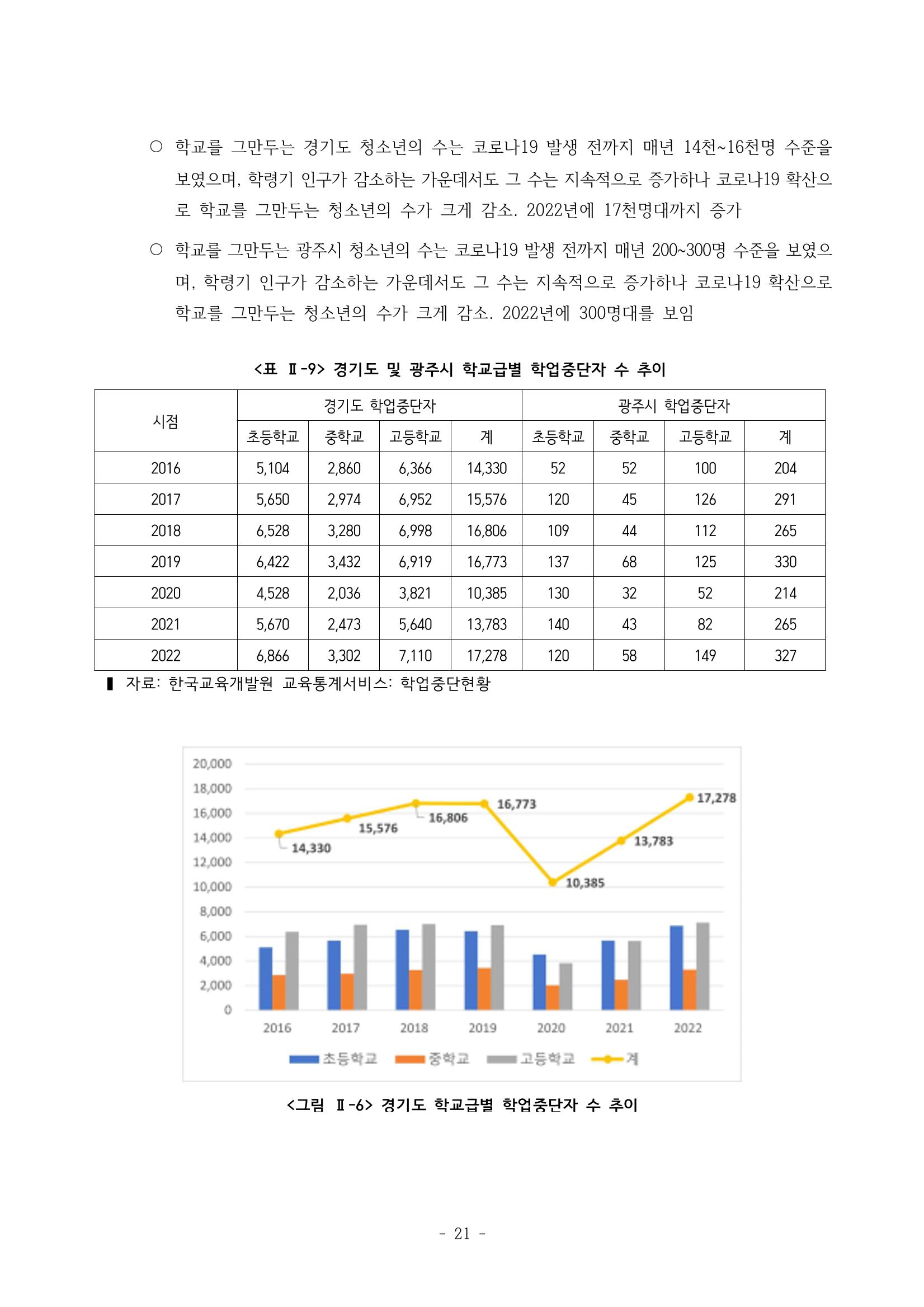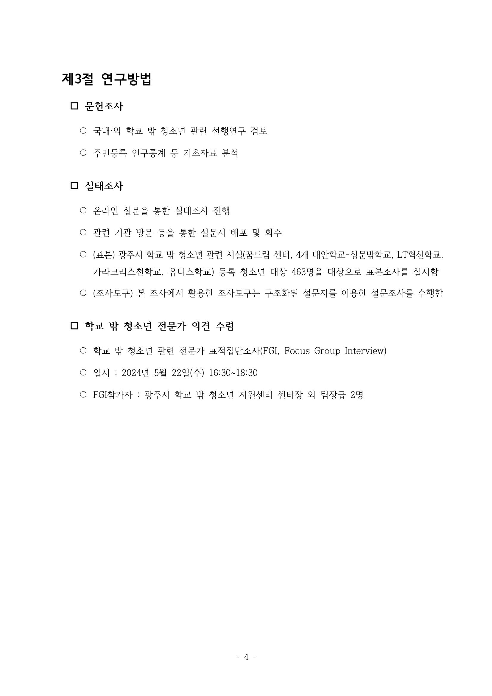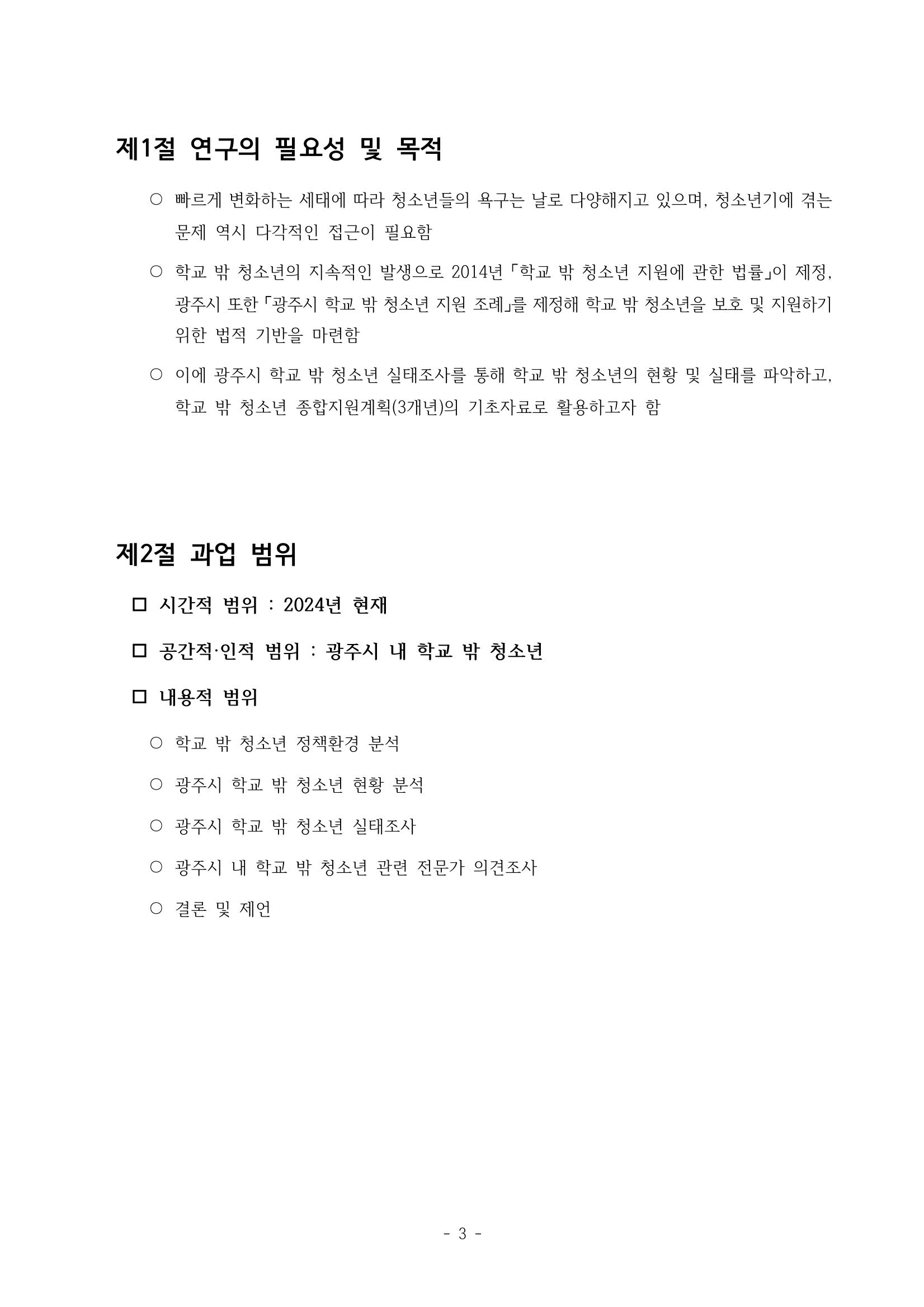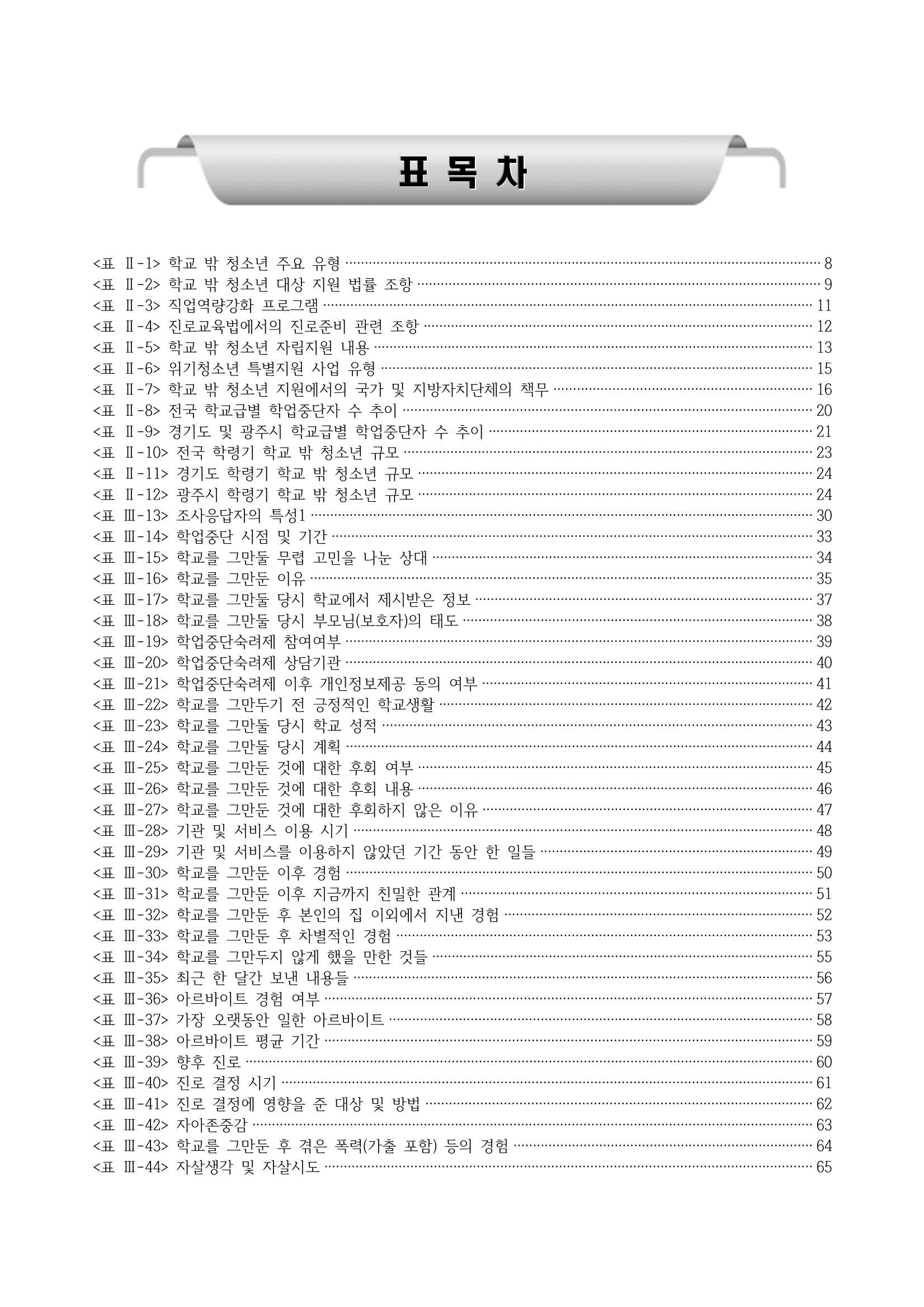 광주시 학교밖 청소년 실태조사 연구용역