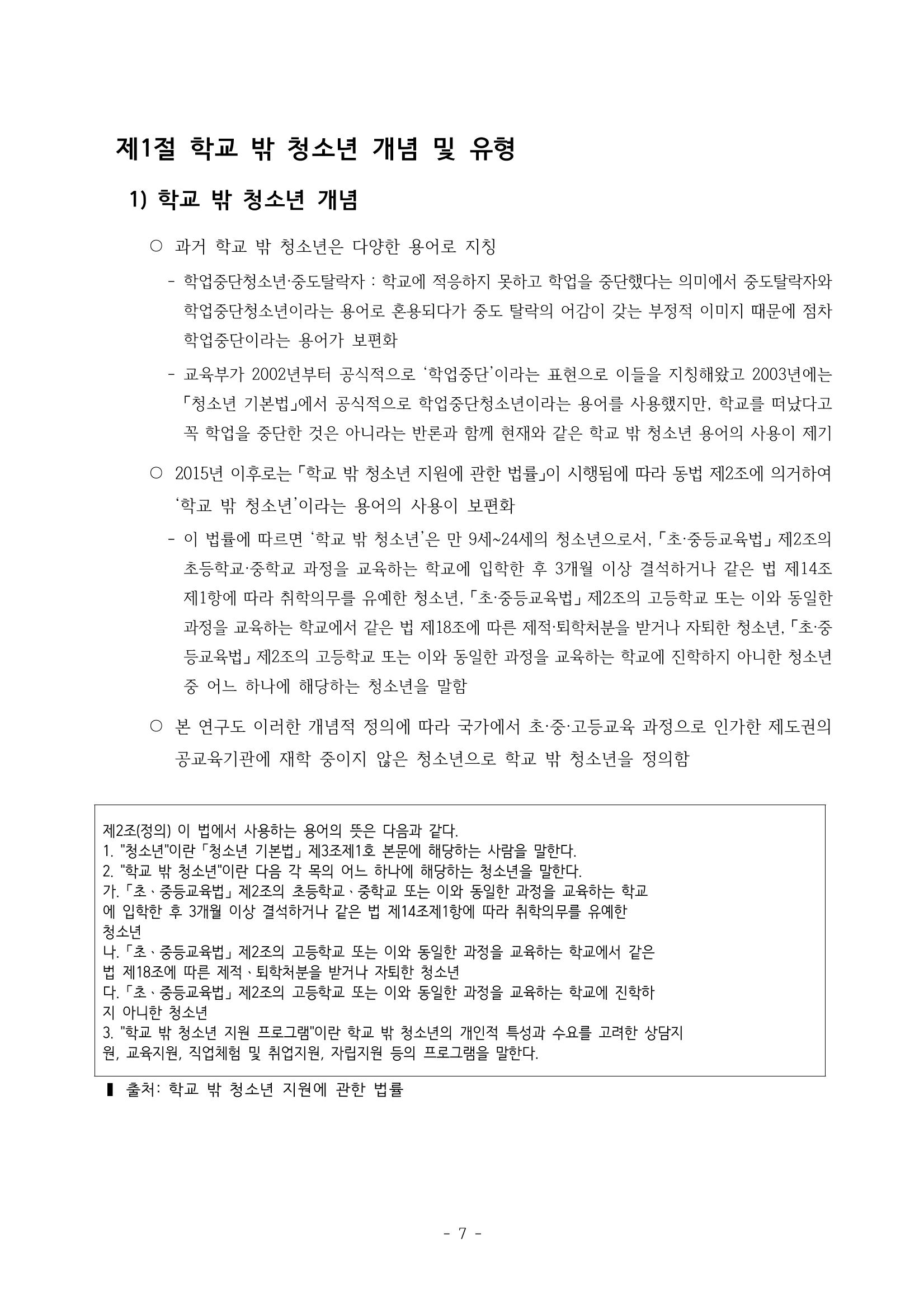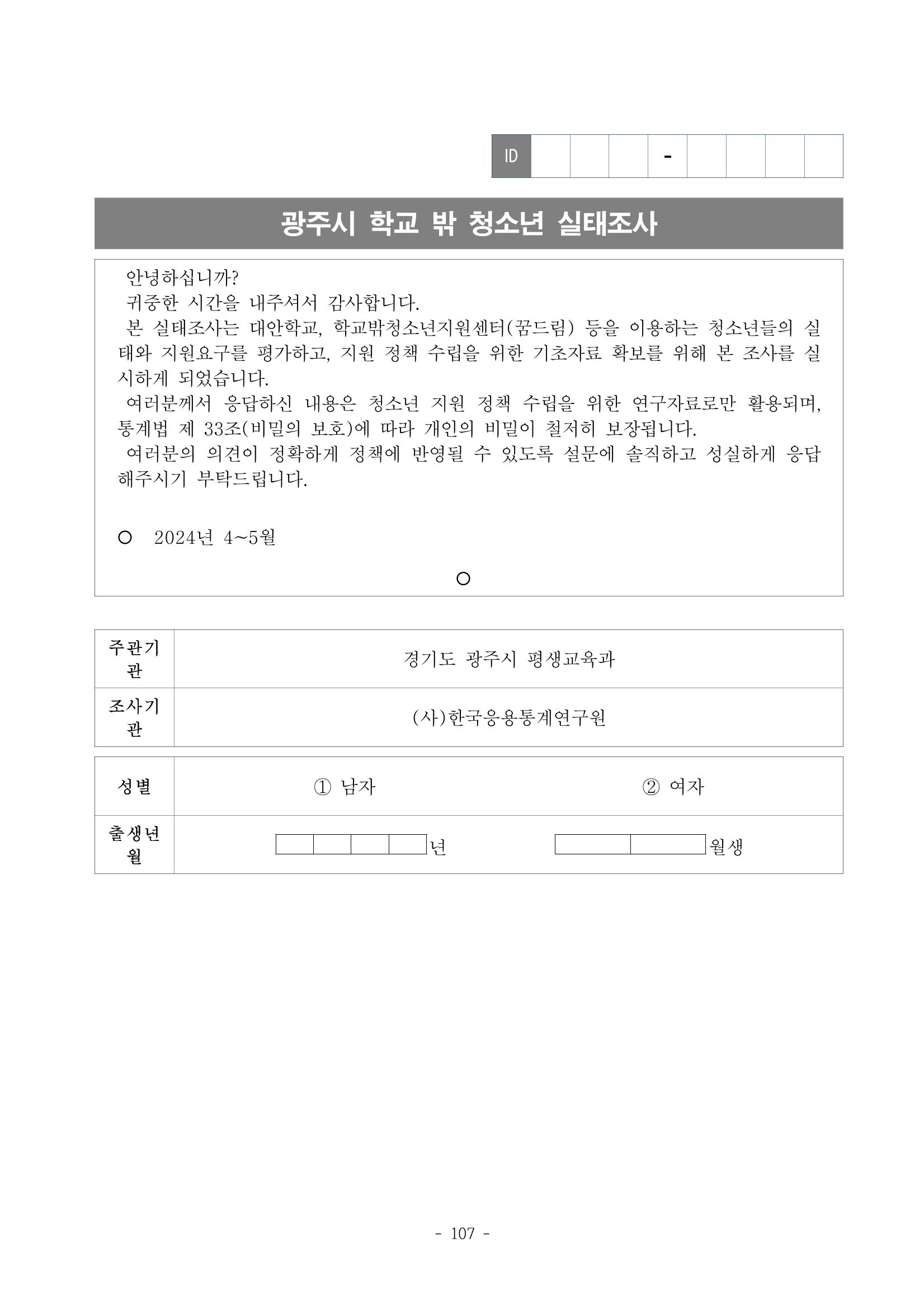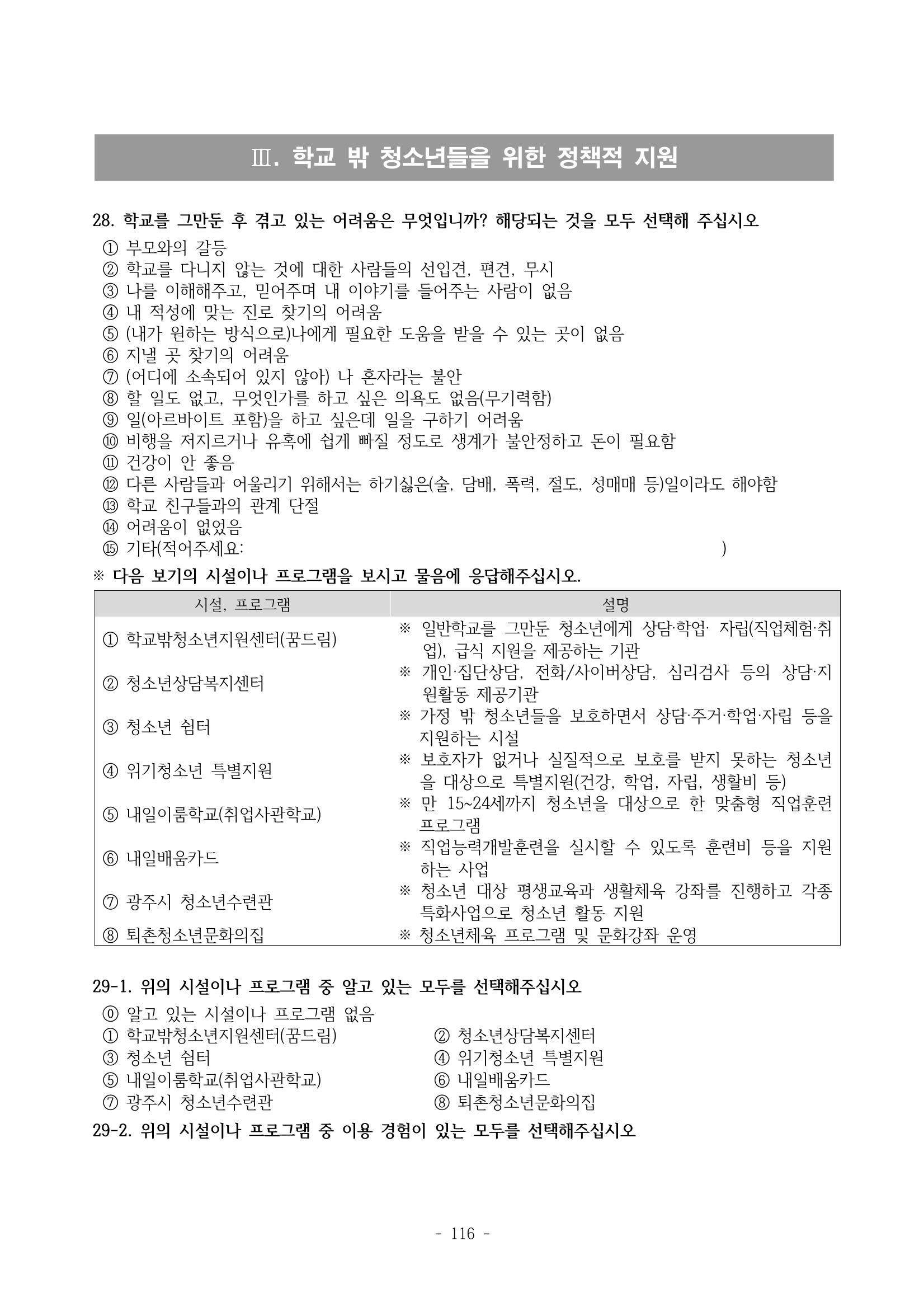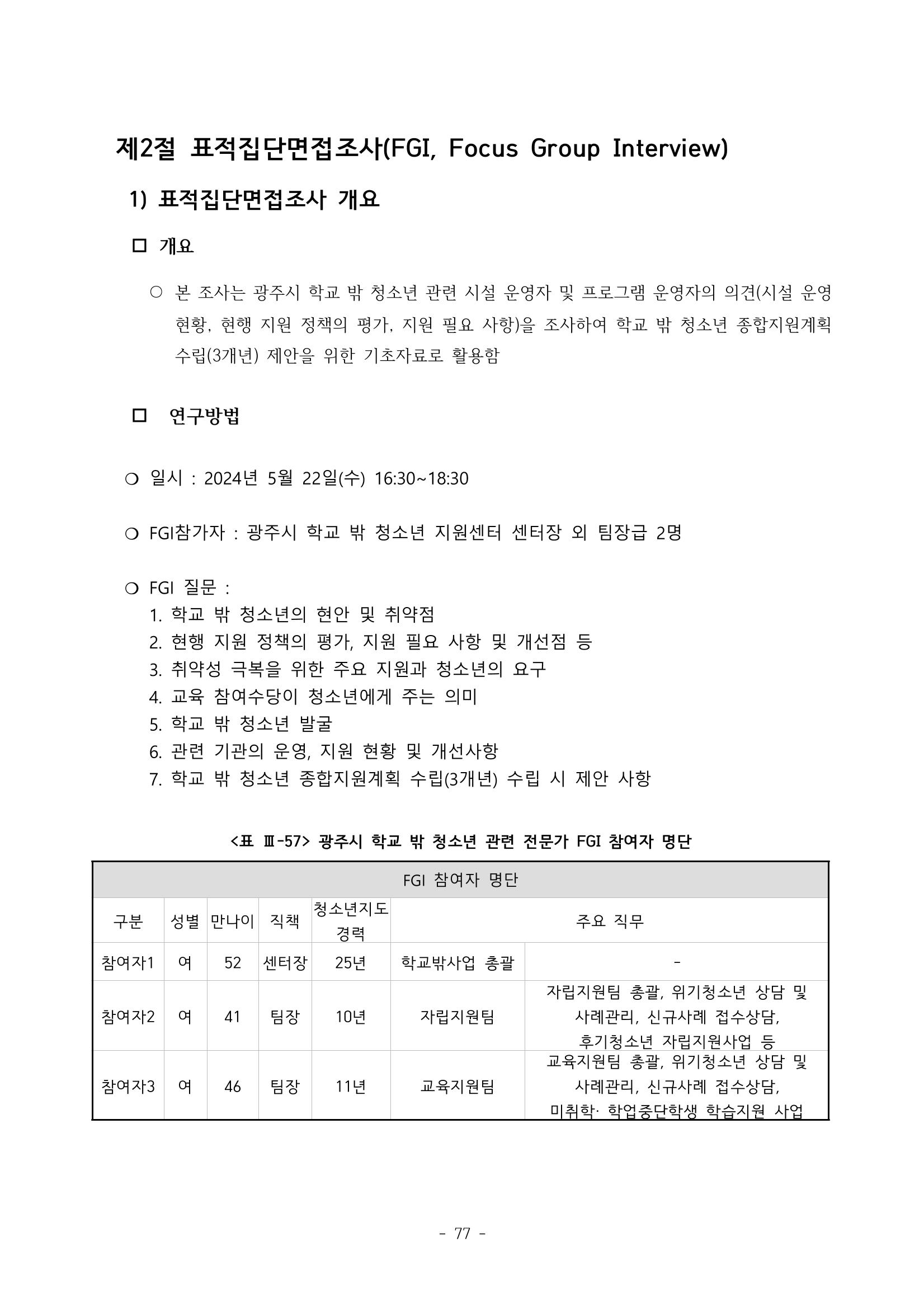 광주시 학교밖 청소년 실태조사 연구용역