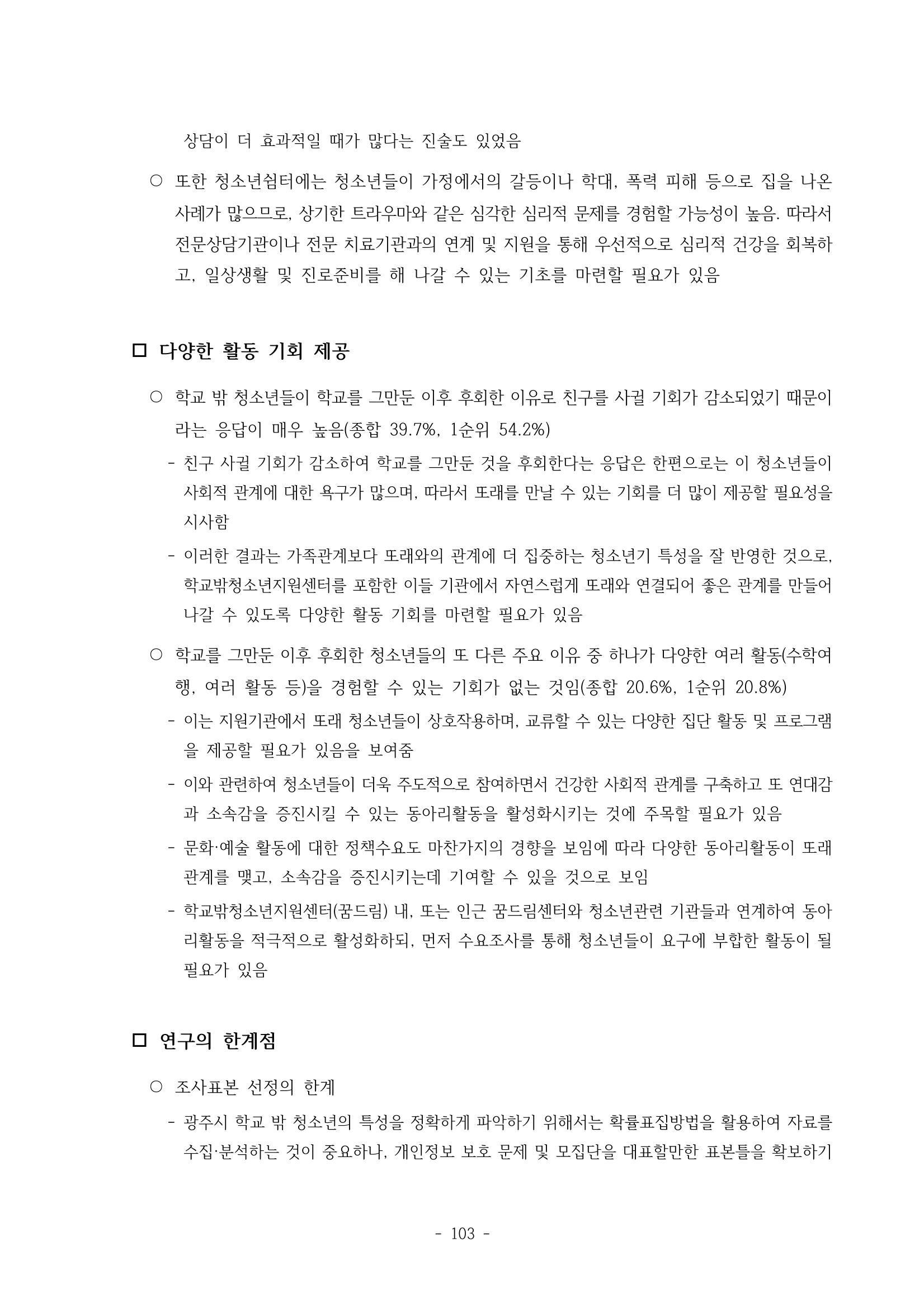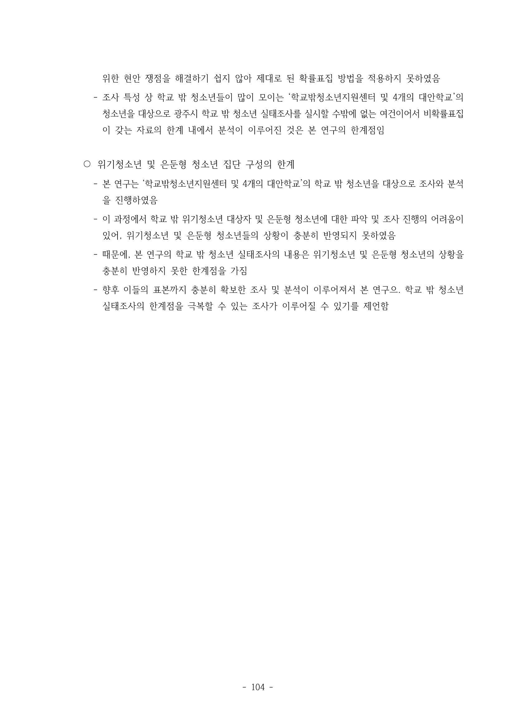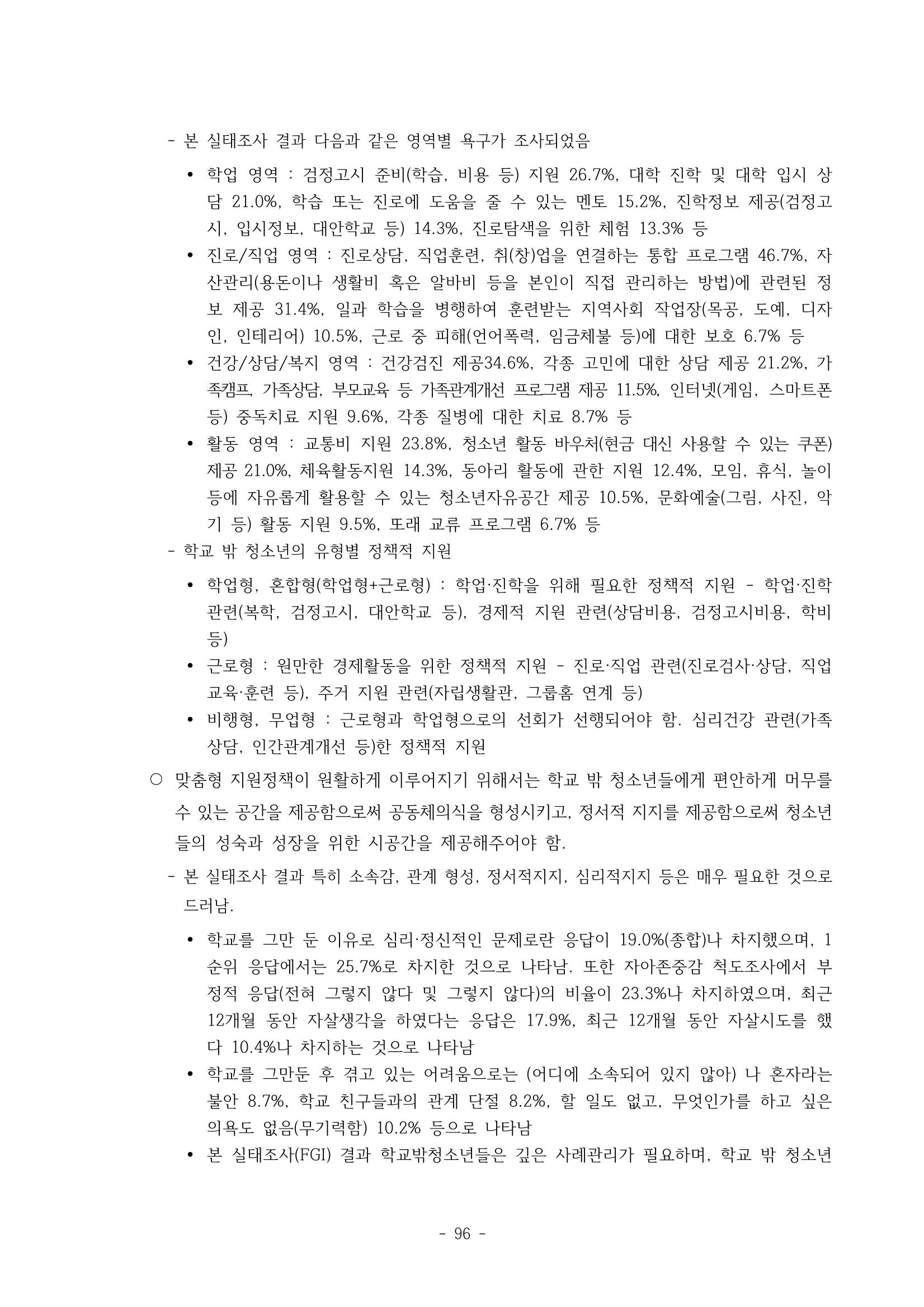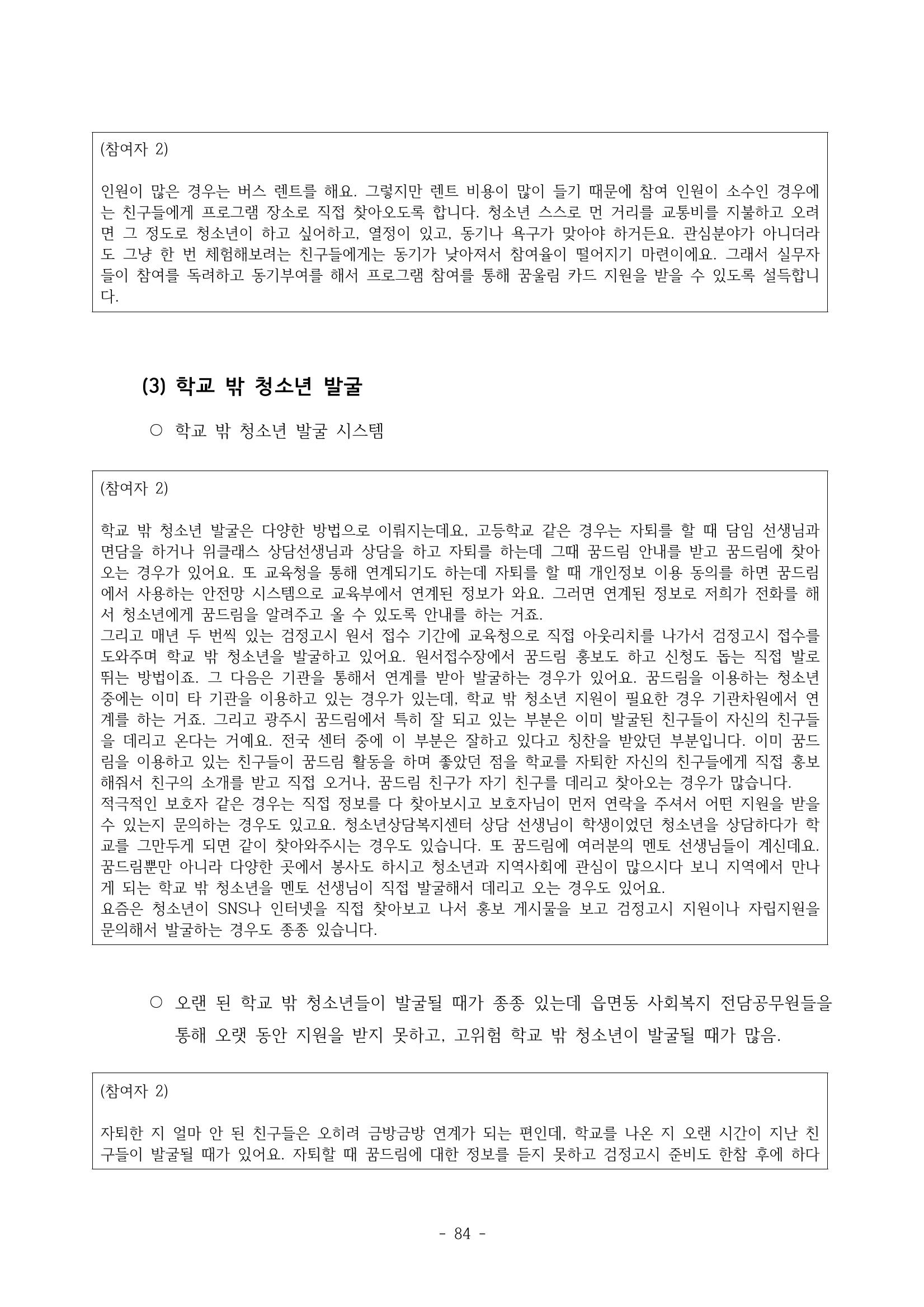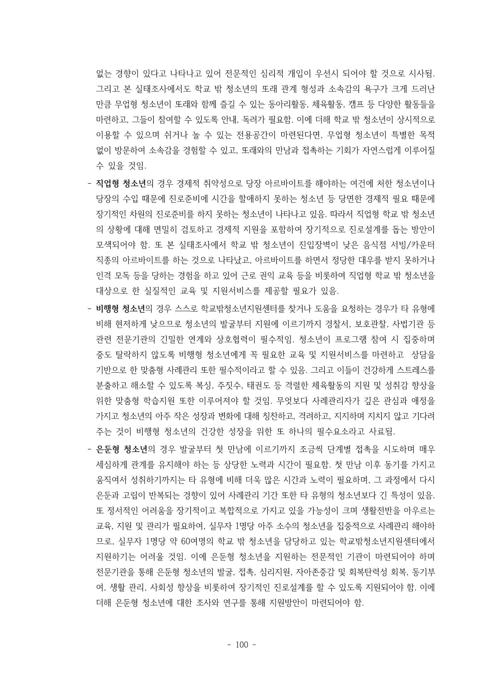 광주시 학교밖 청소년 실태조사 연구용역