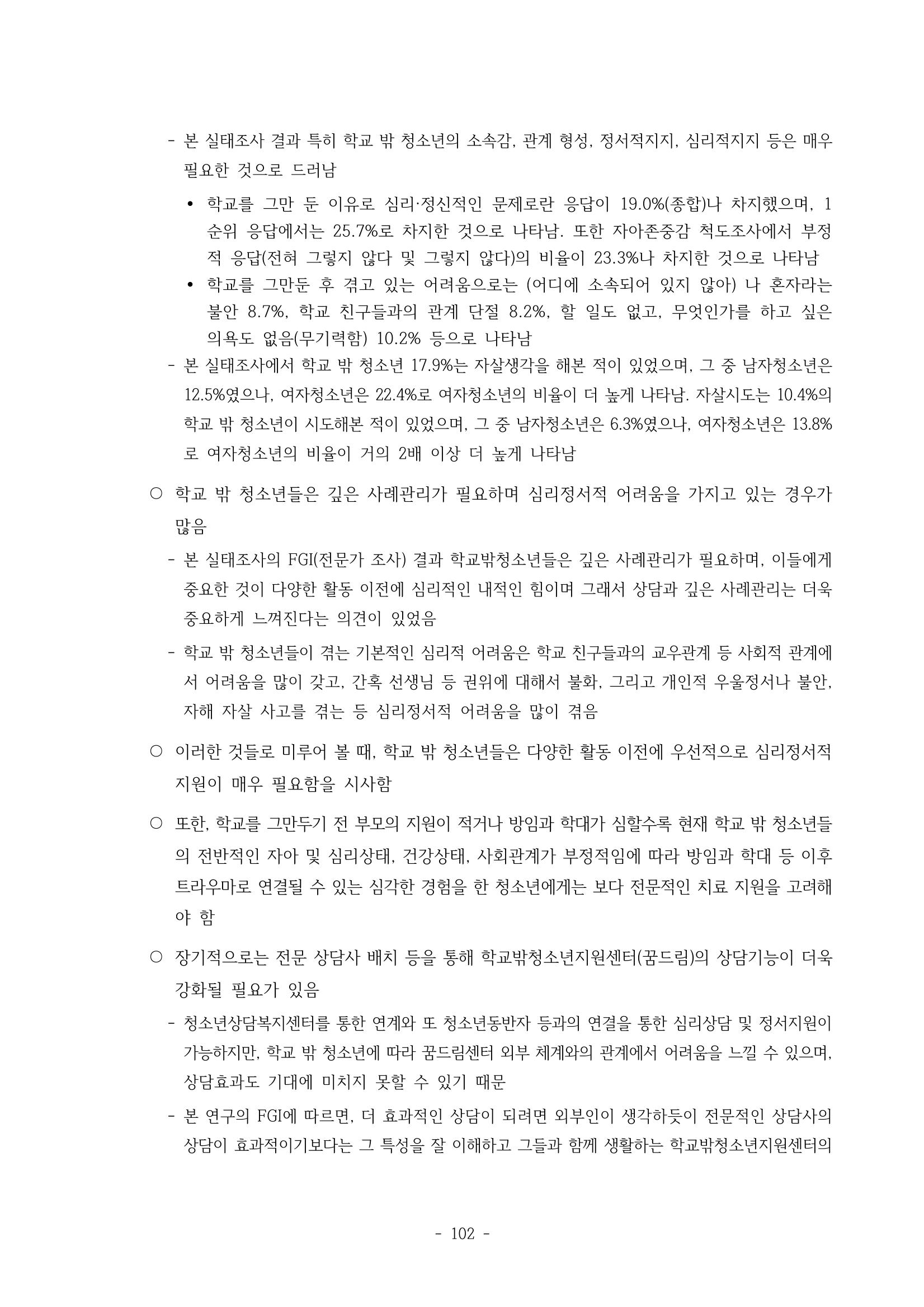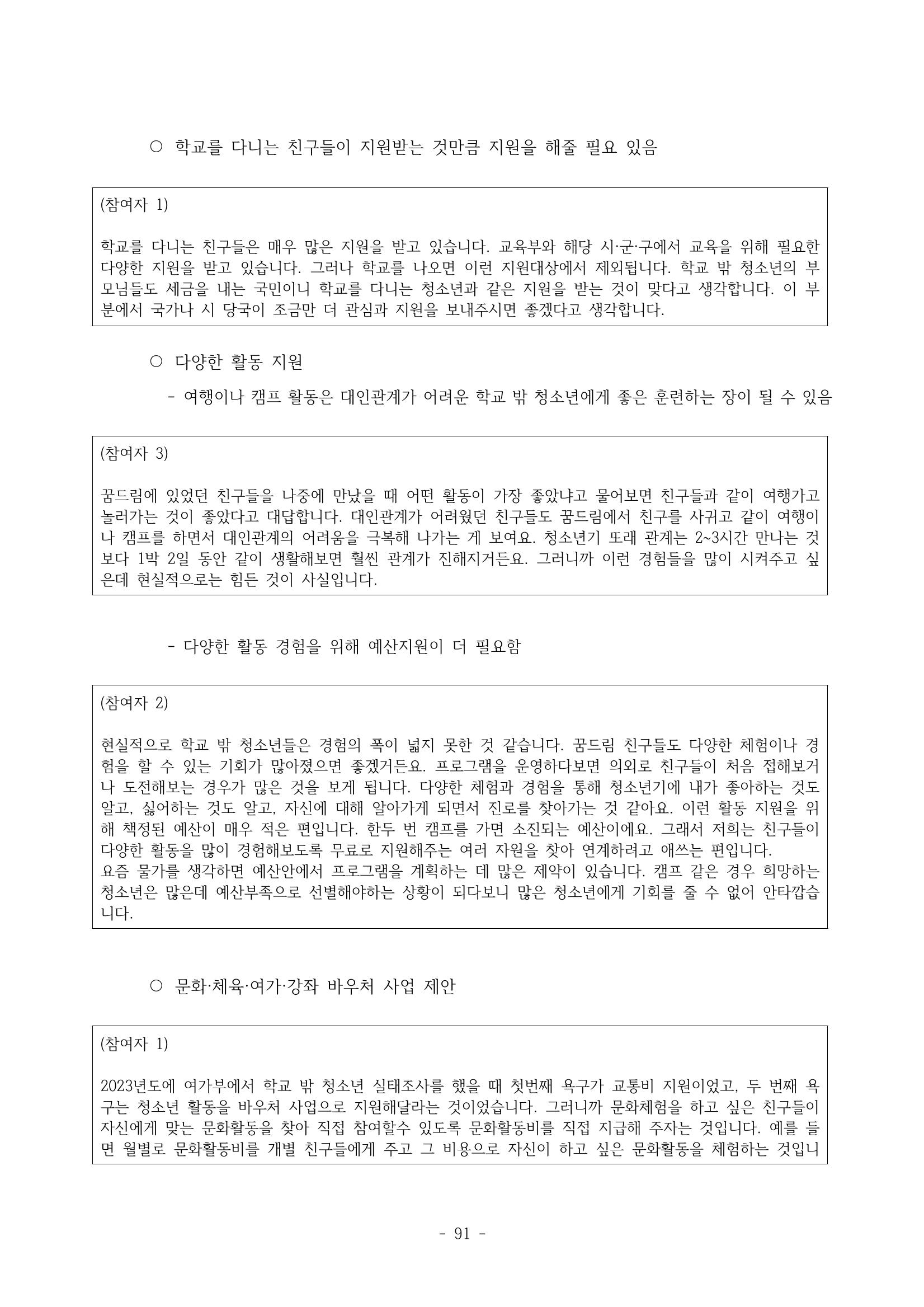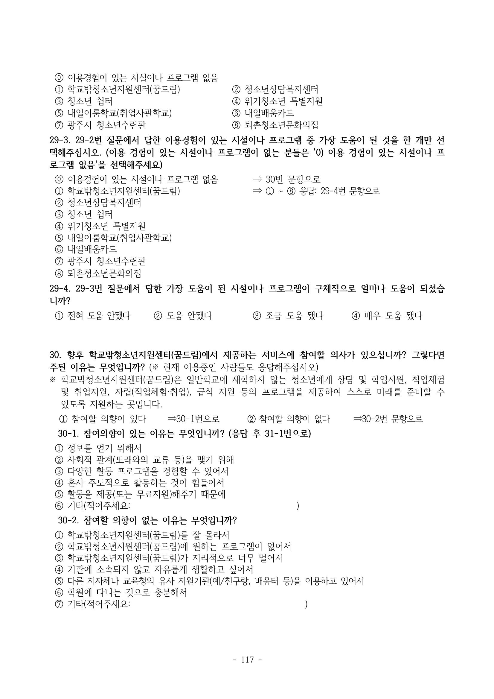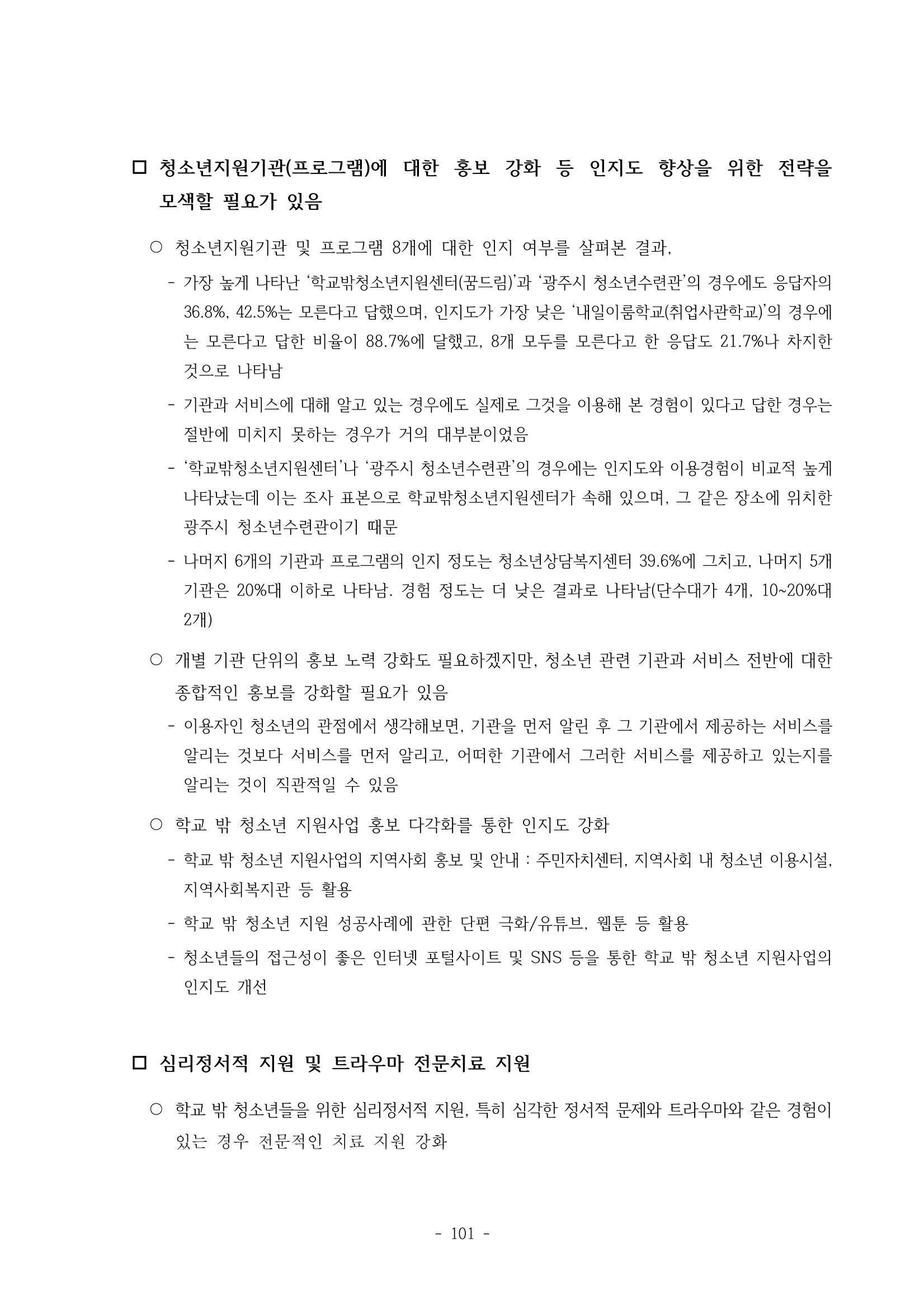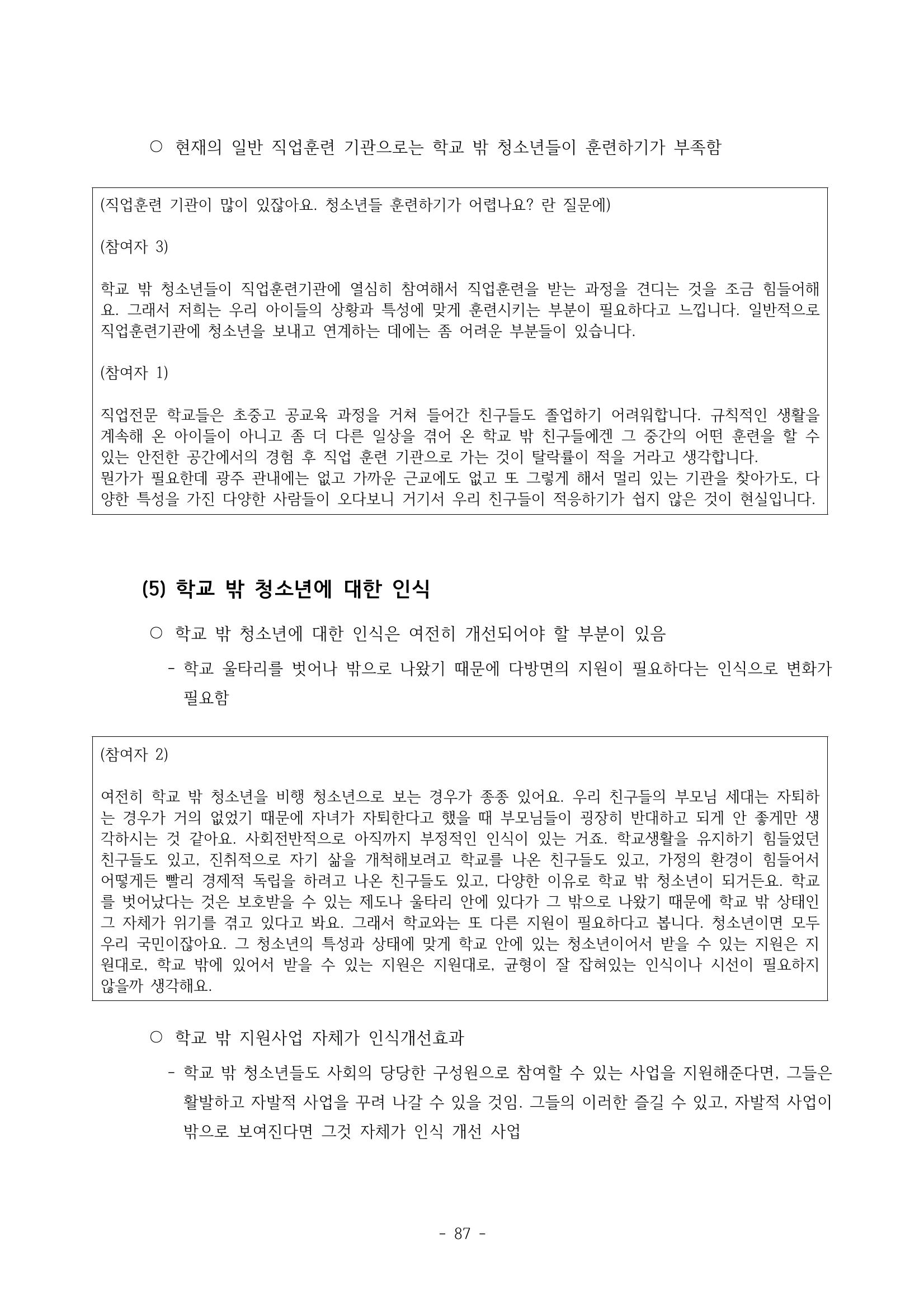 광주시 학교밖 청소년 실태조사 연구용역