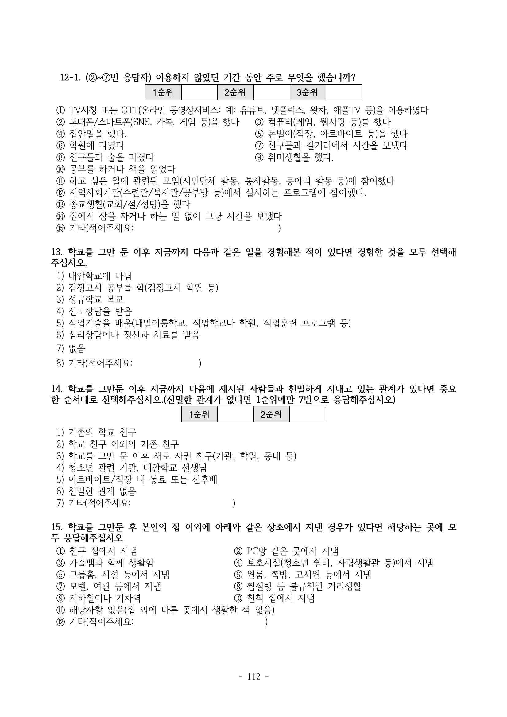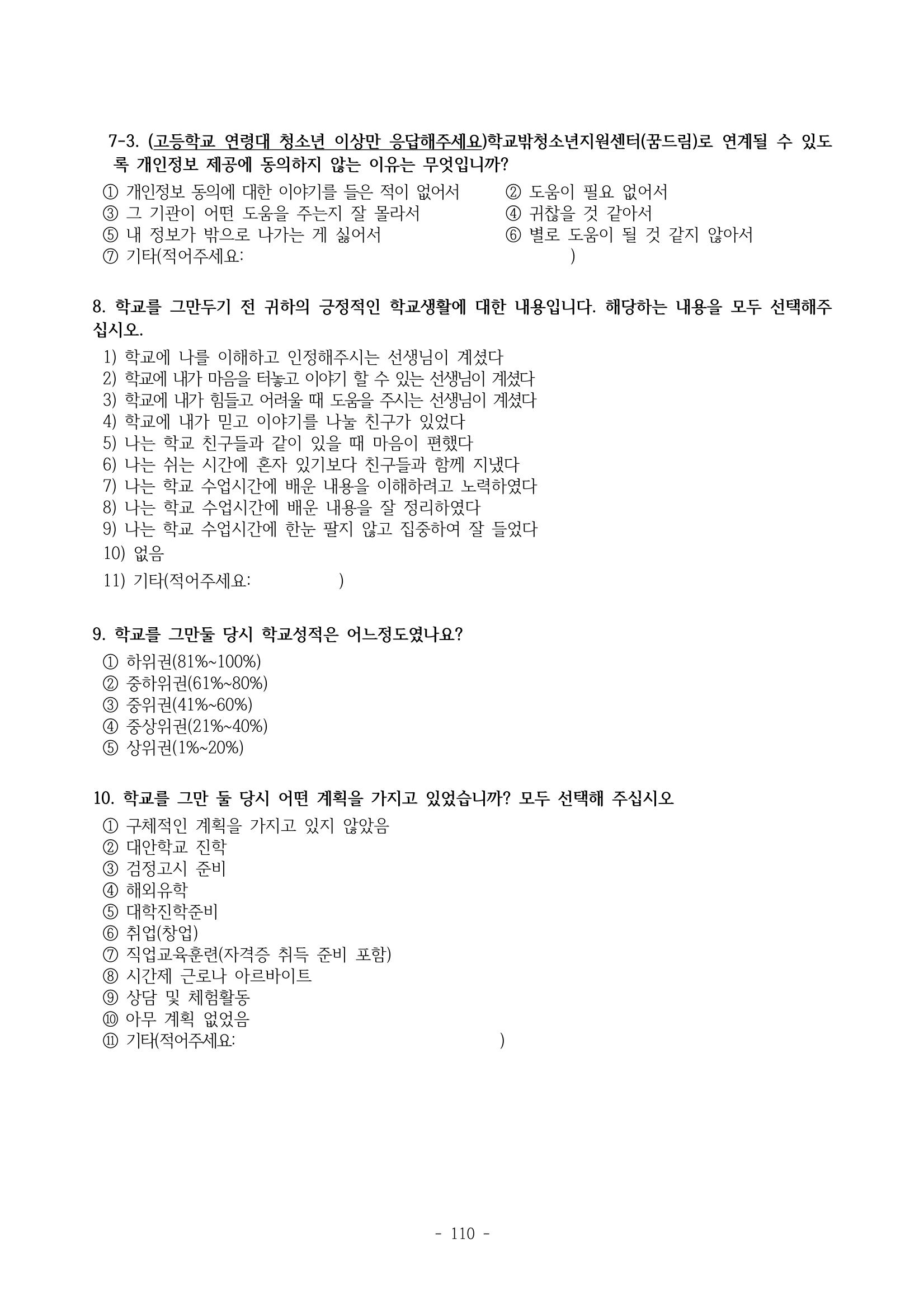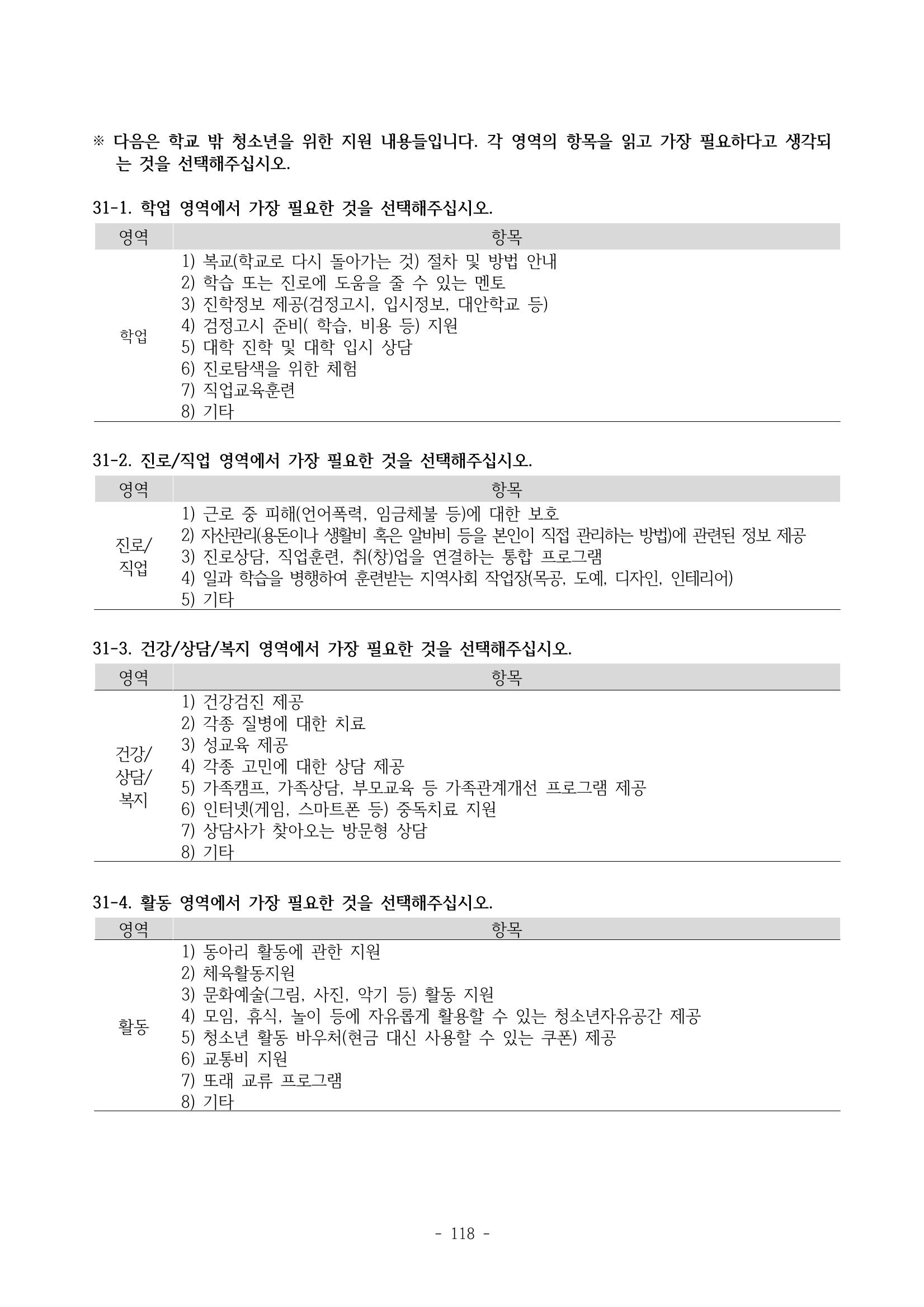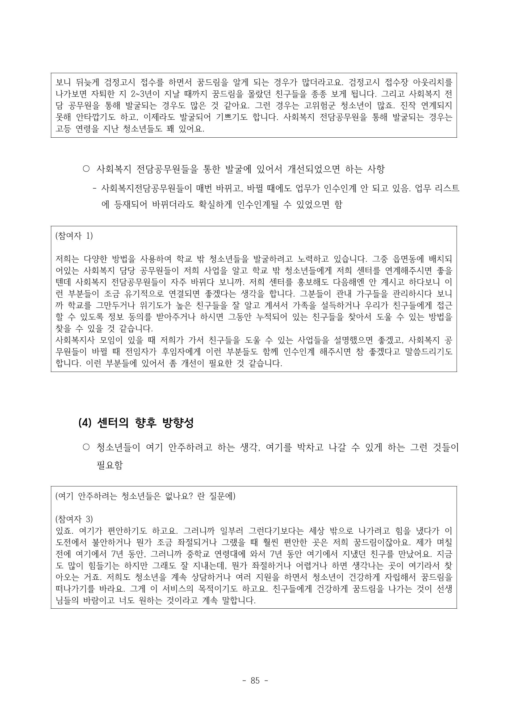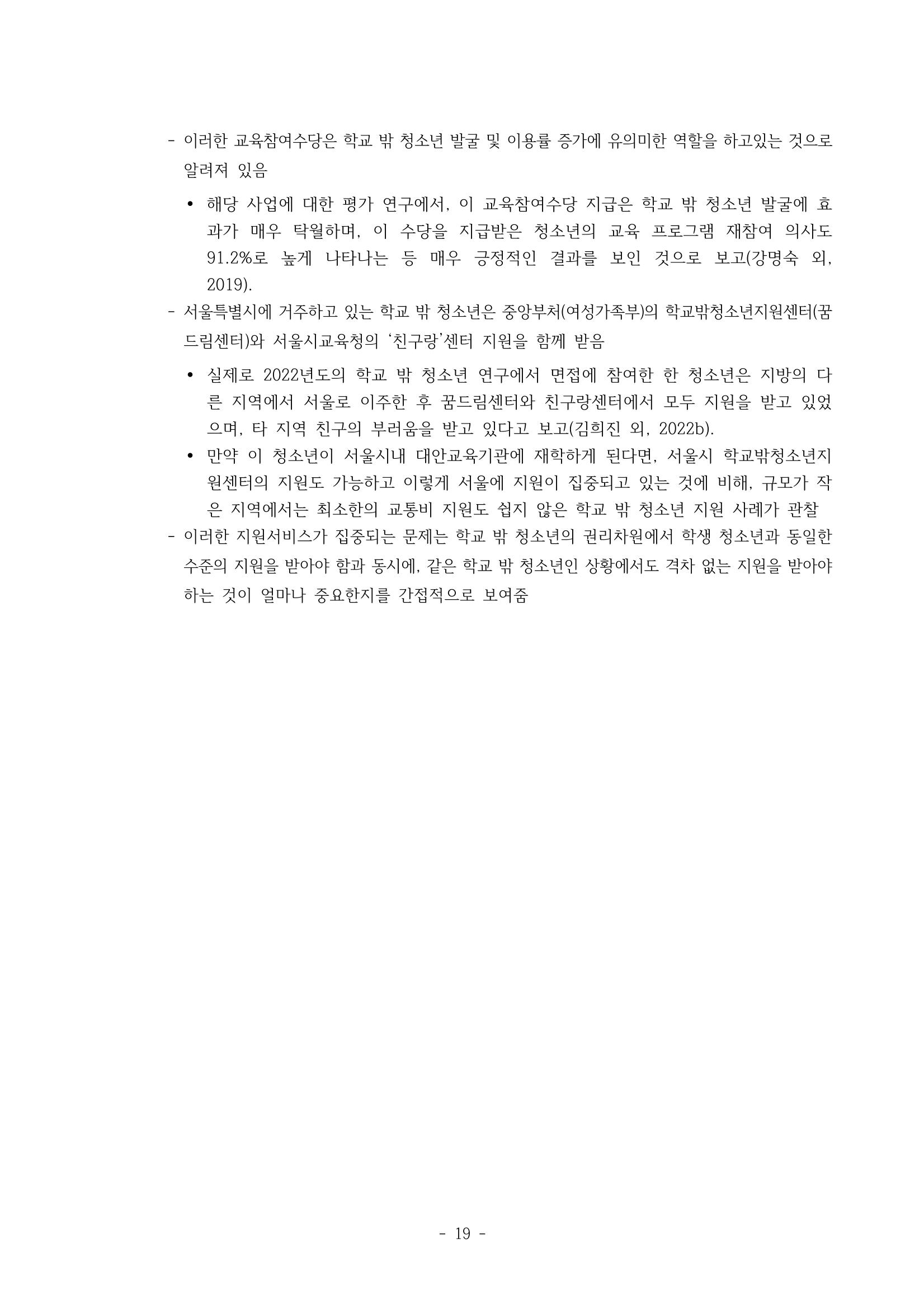 광주시 학교밖 청소년 실태조사 연구용역
